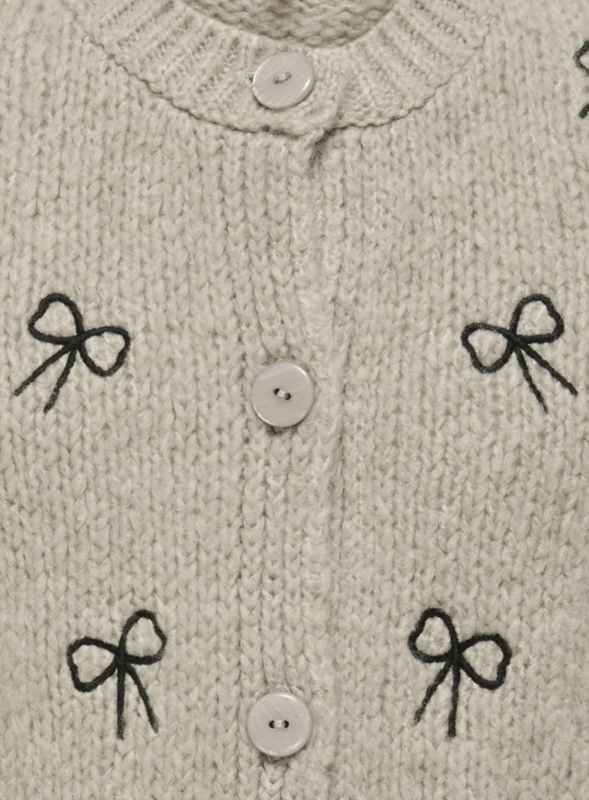 ONLY KOGCODY L/S O-NECK BOW CARDIGAN KNT Style No. 15359978 Color: Pumice Stone Melange Detail Bows/Black