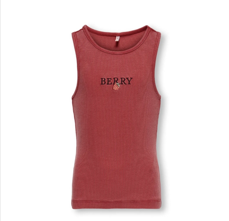 ONLY KOGJILLY EMB WASHED TANK TOP JRS Style No. 15373005 Colour: Barbados Cherry Strawberry/EMB