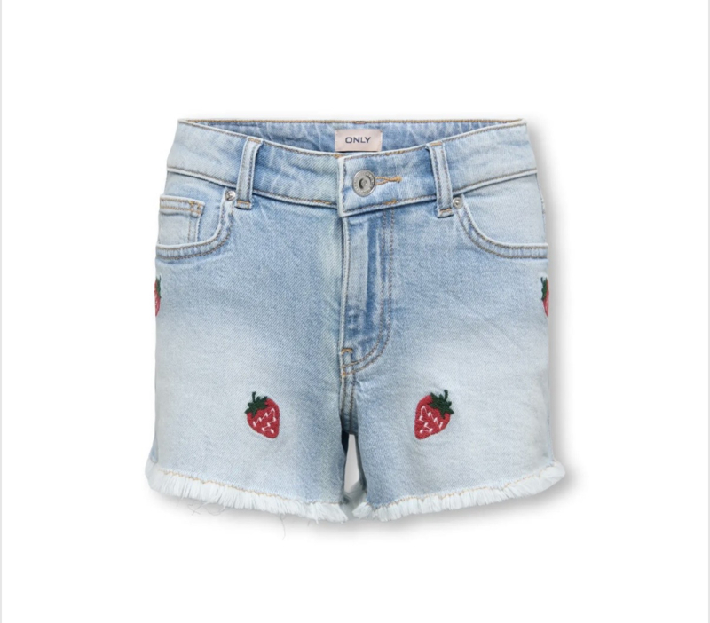 ONLY KOGROBYN EX VINTAGE BERRY DNM SHORTS Style No. 15370226 Colour: Light Blue Denim STRAWBERRY EMBROIDERY